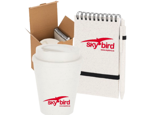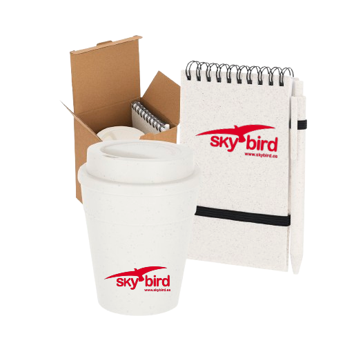– Bloc de anillas con tapas de caña de trigo con bolígrafo a juego. De tamaño compacto, con elástico de cierre en elegante color negro. Incluye 70 hojas con disposición a una raya y diseño eco. Bolígrafo de mecanismo pulsador en caña de trigo con tinta azul. Incluye distintivo Wheat Straw.